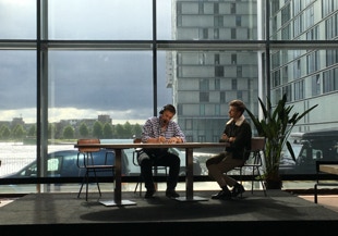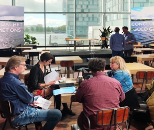 Presentator Winfried Baijens en opnameleider Bertus Holkema tijdens de repetitie van Nationale Viering Bevrijding 2019.